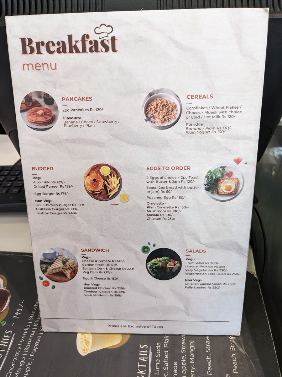 Tea enthusiasts will appreciate the diverse ranges, from Assam to Kashmiri Kahwa. Don't miss the mocha delights, featuring variations like Double Chocolate Mocha and refreshing Iced Cafe Mocha.